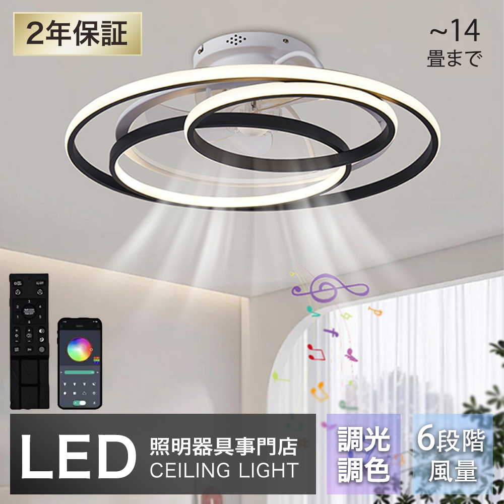 シーリングファンライト dcモーター 調光調色 6~14畳 音楽再生 高輝度 リモコン付き 照明器具 天井照明 省エネ 6段階風量調節 薄型 軽量 扇風機 寝室 家庭用