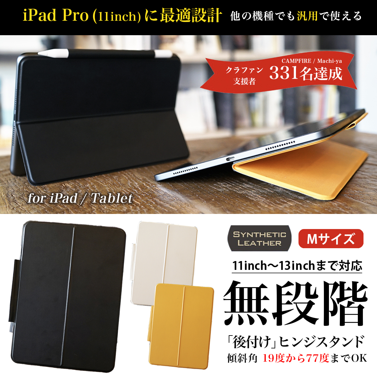 【and S】Mサイズ 後付スタンド タブレット 無段階 キックスタンド 19度から77度 iPad Pro・air/10.9〜13inch 汎用