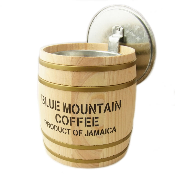 天然木の素朴な風合いが魅力の木樽に、灰皿をセットしています。