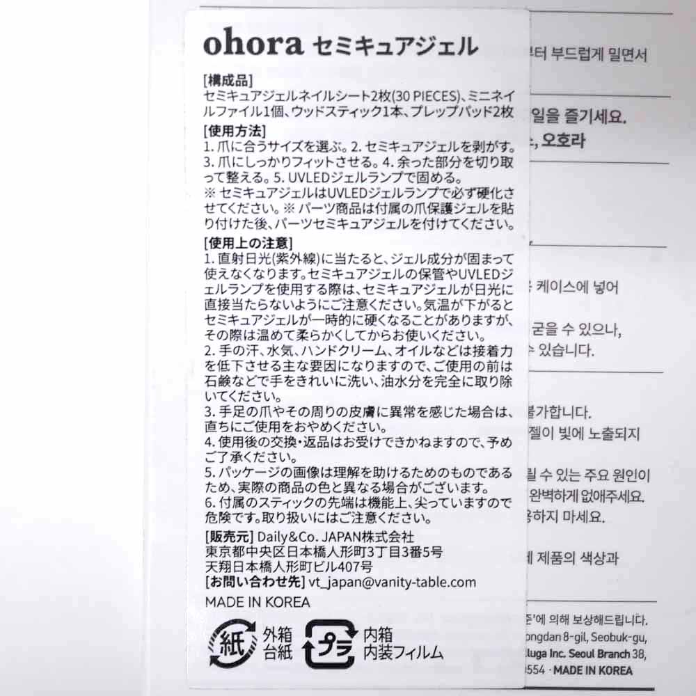 ■商品名 オホーラ ネイル ジェルネイル 足用 ペディネイル フットネイル セルフジェルネイル セルフネイル おうちネイル セミキュアジェルネイル ネイルシール ネイルステッカー 要硬化 ohora gelnails nail OHORA-PB OHORA-PD 8809622448