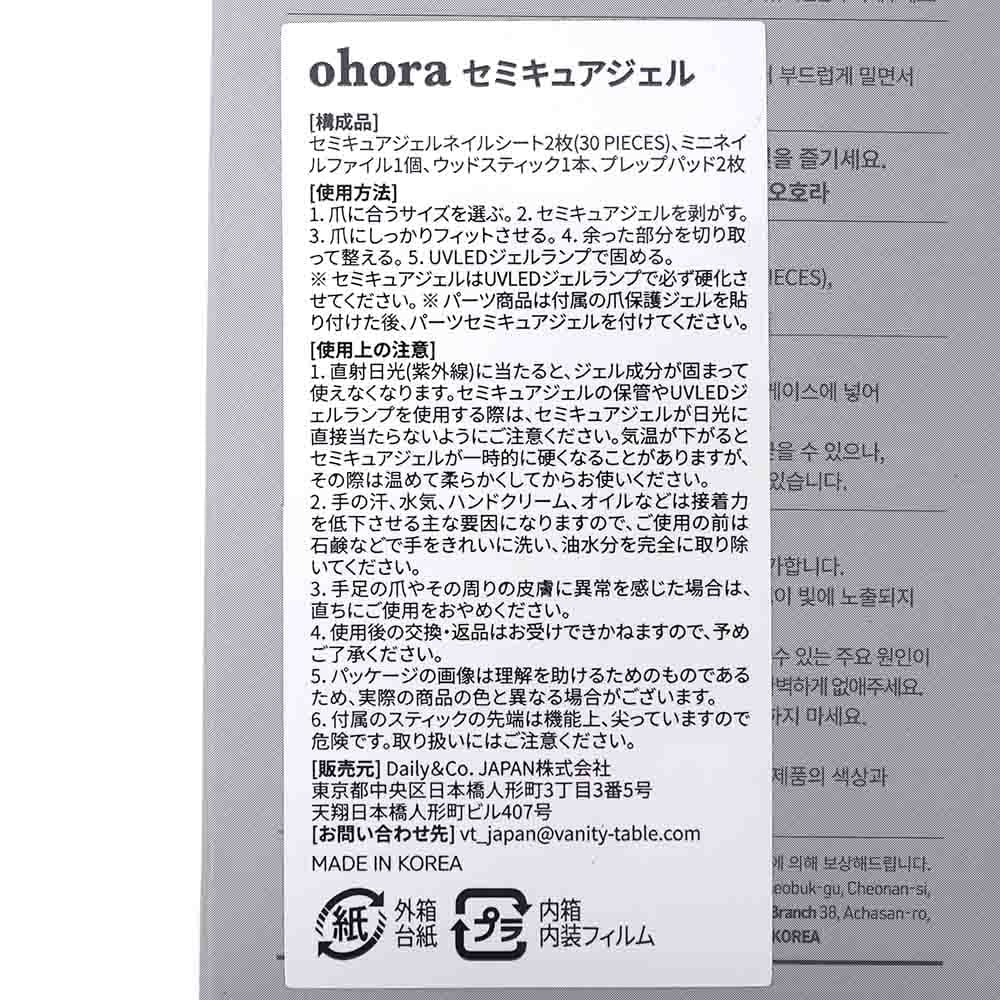 ■商品名 オホーラ ネイル ジェルネイル 足用 ペディネイル フットネイル セルフジェルネイル セルフネイル おうちネイル セミキュアジェルネイル ネイルシール ネイルステッカー 要硬化 パーツ付き ohora gelnails nail OHORA-PP 8809622448
