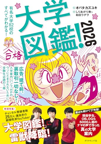 選ばれ続けて27年目! 現役生・OB・OGら5000人超のナマの声でつくった真の大学案内! 【巻頭特集】チャンネル登録者数25万人以上!大人気グループ・雷獣と座談会! 各大学の紹介も学部情報だけでなく、学食からイベント情報まで満載! 高校1年生から3年生まで知っておきたい情報盛りだくさん! 入学案内、パンフレット、ウェブサイトのウソにだまされない! オープンキャンパスの下準備にも使える! 親世代も子世代も一緒に読める大学の情報を限界まで詰め込みました! 大学入試新方式から学科の特徴まで、基本情報もこれ1冊でわかる! 2026年版は超人気グループ・雷獣と大学について語り合う! ・灘ってどんなところ? ・上から見る景色、失敗して見る景色 ・目的を持って大学へ ・もう一度受験するなら?