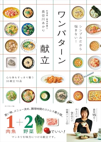 【話題沸騰! たちまち4万部突破!!】 「考えたくない時に便利すぎる…」と大好評。 ★「ワンパターン」を味方にすると、 毎日の料理が回りだす! ★買い物、メニュー決め、調理のストレス最小限!! ★長谷川あかり初の献立レシピ本 献立をどう決めて回していくかは、 毎日料理する人にとって一番の悩み。 組み合わせ、栄養バランス、味つけ、 食材の使いきり、家族の好み、時間…… 作ることに追われて、 料理から遠ざかってしまってはもったいない! ワンパターン献立なら、 全部【1肉魚+2野菜】でラクになります。 ◆調理時間は最短15分 ◆作るのは2品だけ ◆考えるのも疲れた日は「酒蒸し」でOK 食材が少ないので、買い物に悩まない! パターンがひとつあれば、 味つけもアレンジも自由。 具だくさんおかず、スープ、ごはん、めんなど、 組み合わせがあたらしい2品献立を 7日×5週=35献立70レシピ+α掲載。 栄養も見栄えも考えてあるので、 そのままマネするだけでも、 ミニマルで豊かな献立が あっという間に作れます。 ワンパターン献立で手間を最小限にして、 “マンネリ”を味方につけてみませ