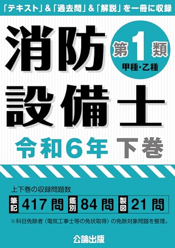 ※乙種第1類/甲種第1類に対応 上下巻の収録問題数は 筆記:417問/鑑別:84問/製図:21問 繰り返しの類題で意識せずに暗記ができる! 実際に出題された過去問題のみを収録! 豊富な問題で合格をサポート! 収録内容: (6)消防用設備等の構造機能 電気部分 (7)消防用設備等の構造機能 規格部分 (8)実技 鑑別等 (9)実技 製図(※甲種受験者のみ対象)