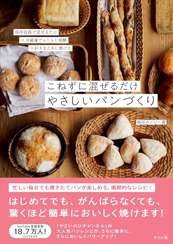 *********************** はじめてでもがんばらなくても、おいしく焼けます 保存容器で混ぜるだけ!→冷蔵庫でらくらく発酵 →忙しくても好きなときに焼ける!簡単レシピ 基本の3つの生地を覚えれば、アレンジは無限大! YouTube登録者数18.7万人のやさいのひチャンネル の大人気パンレシピを、さらにパワーアップ! *********************** ■こねずに、保存容器に入れて混ぜるだけ! パン作りのハードルが一気に下がる画期的なレシピ本 保存容器に材料を入れ、こねずに混ぜるだけ→ 冷蔵庫でらくらく発酵→好きな時に焼き立てを楽しめる、 驚くほど手軽に、自宅でおいしい焼きたてパンが楽しめる本です。 生地は保存容器の中で作るので、粉が飛び散る心配もなく、作業スペースも小さくすみます。 混ぜたら、発酵は冷蔵庫におまかせなのでとっても簡単。 つづきは都合のよいタイミングで、焼き立てパンを楽しめます。 テクニックいらずで、はじめてでも失敗せずに、おいしいパンが作れます。 ■3つの生地を覚えれば、アレンジは無限大! 紹介するのは、味わいと風味の違う「シンプル×