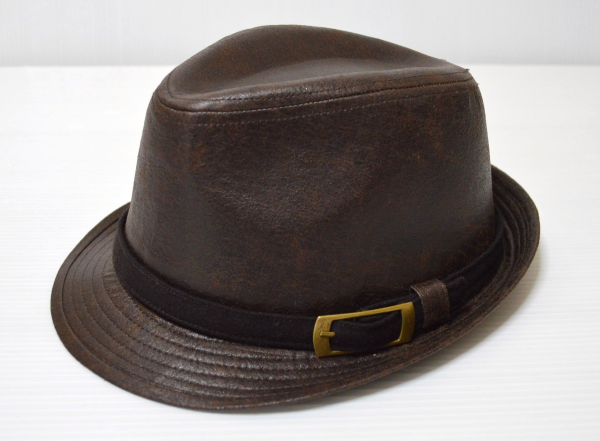 新品未使用品 レザー素材を使用したおしゃれな中折れハットです。