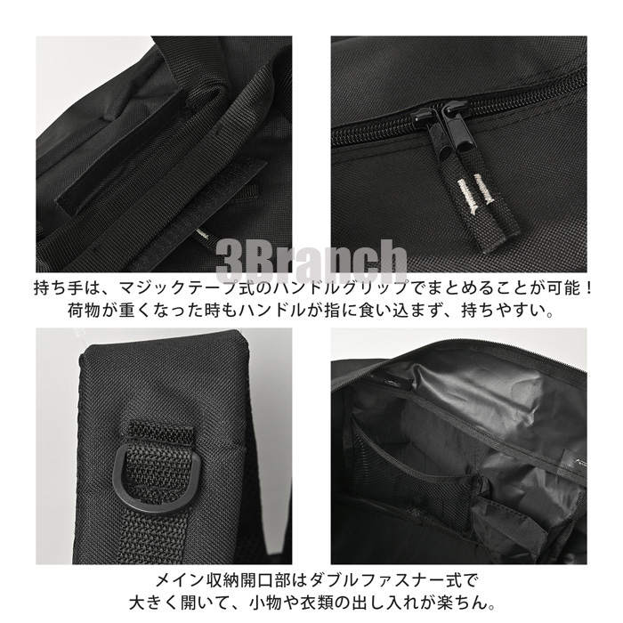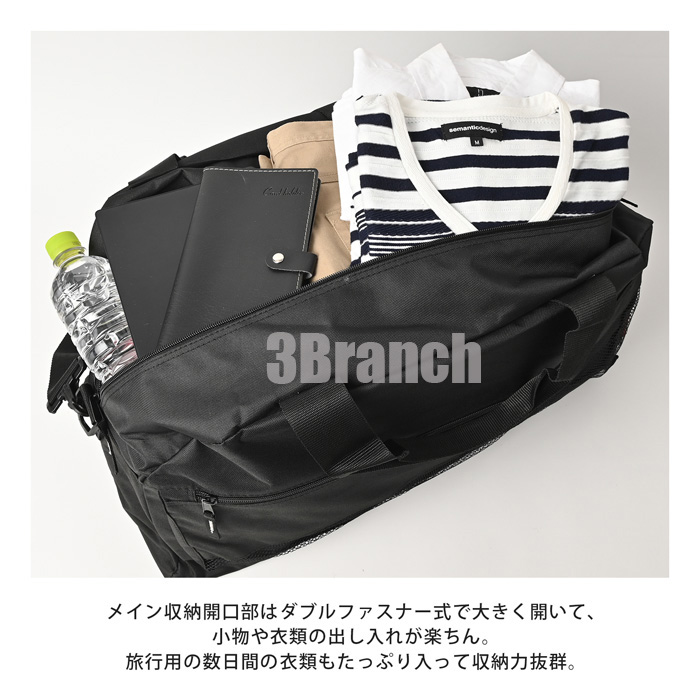 メイン収納の横幅約60cmの大容量ボストンバッグ。
