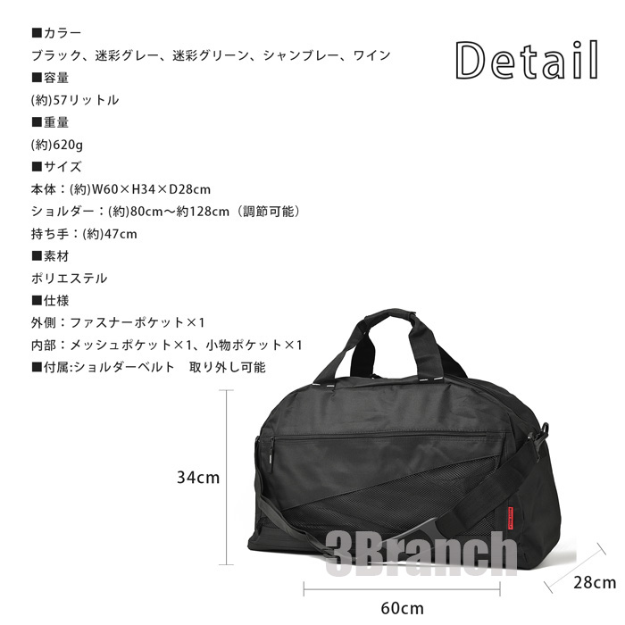 2WAY ボストンバッグ 大容量 57L メンズ レディース ショルダーバッグ スポーツバッグ トラベルバッグ 旅行バッグ 修学旅行 おしゃれ 2泊 3日