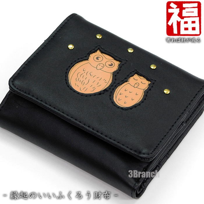 ふくろう 財布 レディース 二つ折り財布 二つ折り 折財布 ショートウォレット ふくろう財布 縁起財布 ブラック 黒
