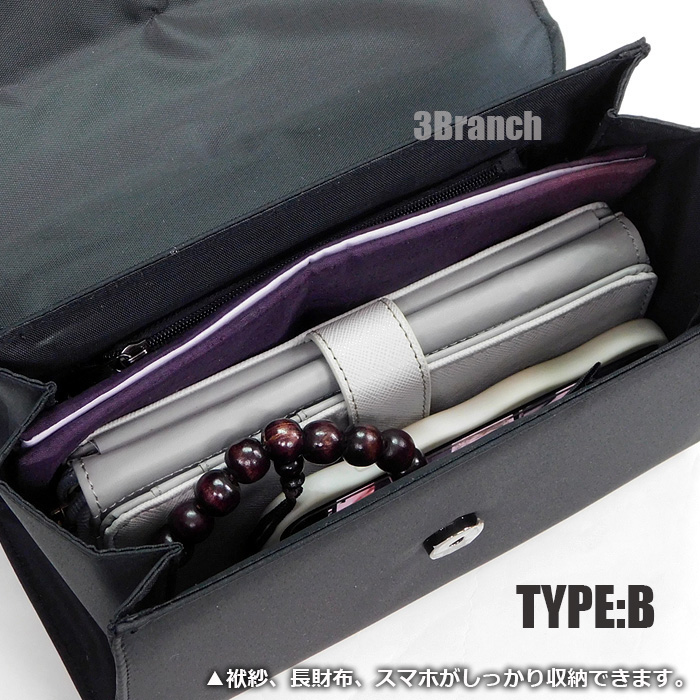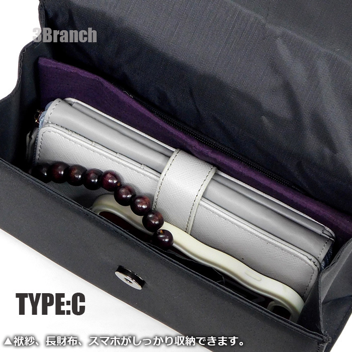 ふくさ・念珠・ハンカチ・スマートフォン・財布など、必要なものを入れても余裕のあるサイズ感。