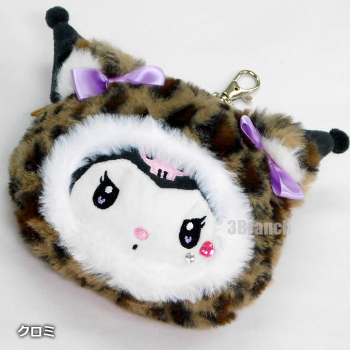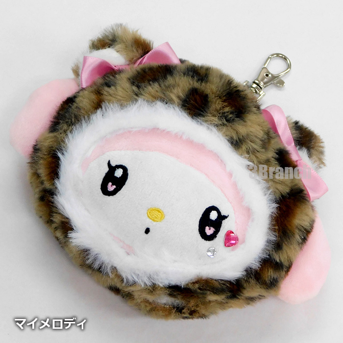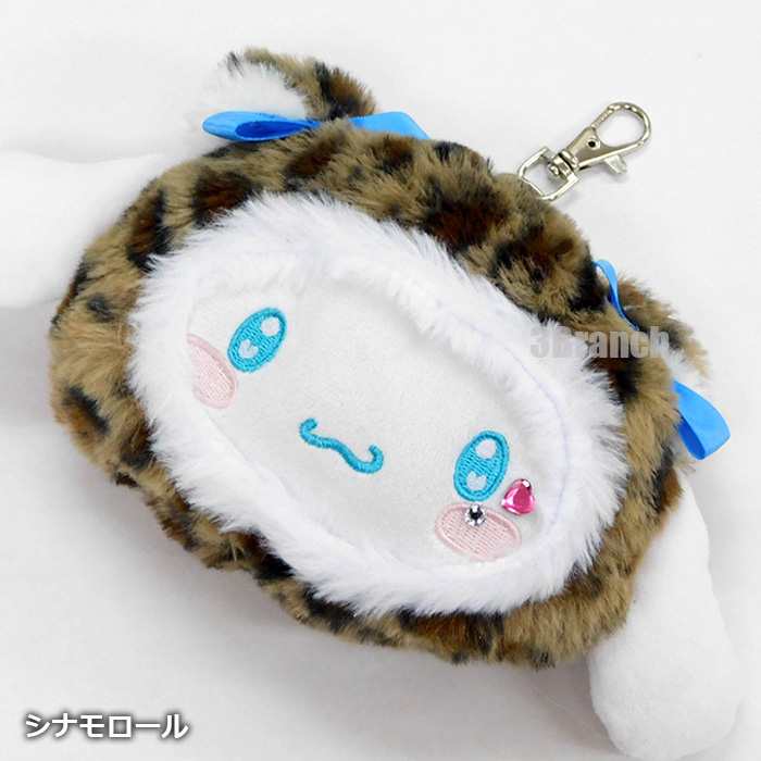 サンリオ フェイス型 リール付き ぬいぐるみ パスケース ヒョウ柄 定期入れ 小銭入れ コインケース クロミ マイメロディ シナモロール