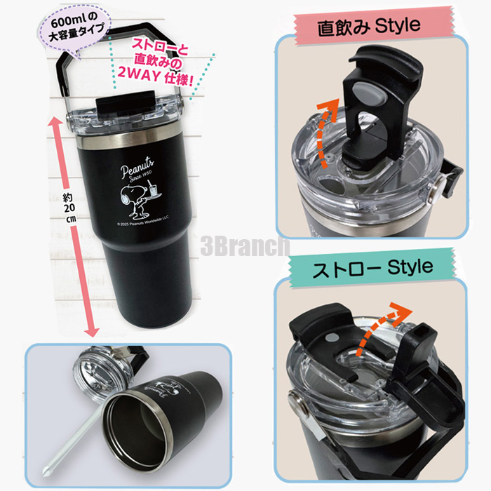 スヌーピー グッズ ストロー付き 2WAY タンブラー ステンレスボトル 600ml 水筒 保冷 保温 直飲み レディース キッズ キャラクター マグボトル SNOOPY PEANUTS