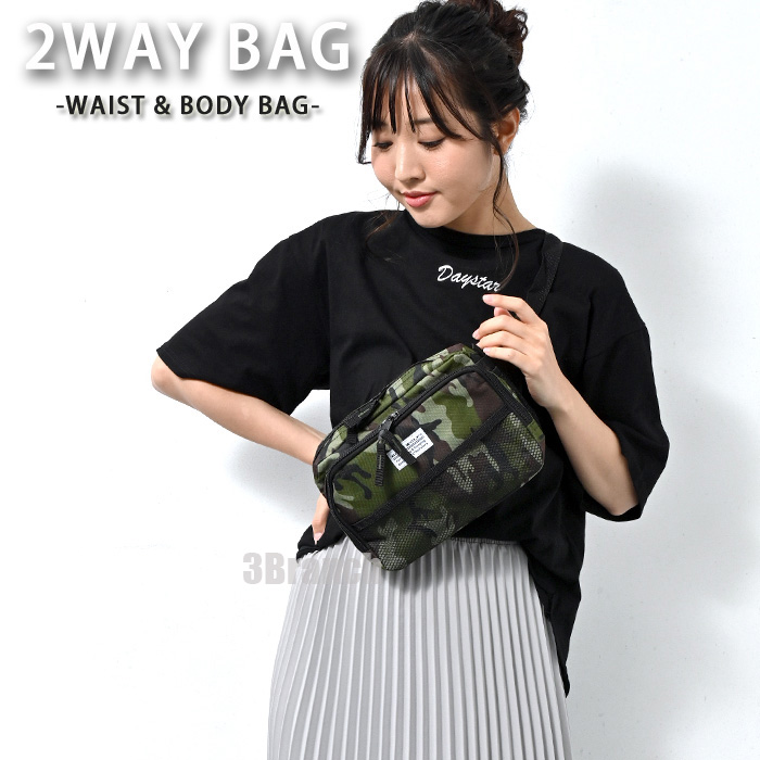 ライフスタイルやシーンに応じて、ボディバッグ、ウエストバッグの2wayで使える。