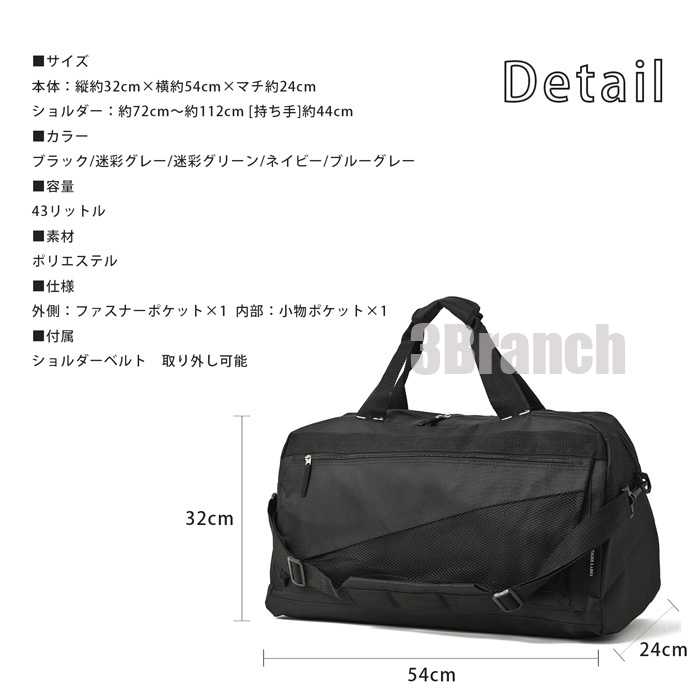 2WAY 大容量 43L ボストンバッグ メンズ レディース スポーツ 軽量 トラベルバッグ ショルダーバッグ 修学旅行 旅行バッグ 合宿 黒 ブラック 迷彩柄 カモフラ