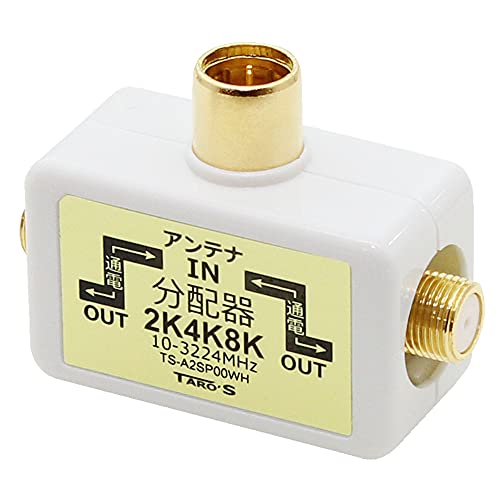 アンテナ分配器 4K8K・地デジ・BS・CS・CATV放送対応 2分配 テレビコンセント直付け 全端子電流通過型 日本仕様 ホワイト TS-A2