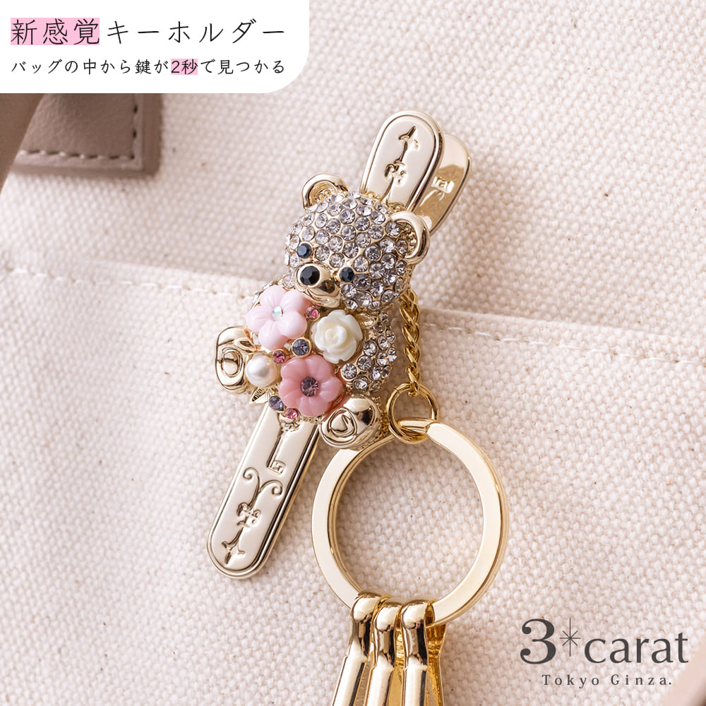 バッグキークリップ スウィート テディベア 3carat 車 鍵 キークリップ キーホルダー バッグ チャーム アクセサリー ギフト プレゼント