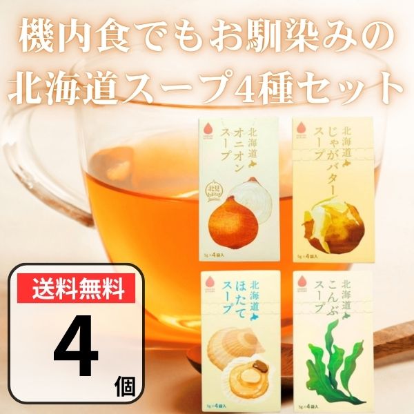グリーンズ北見 北海道 スープ 4種(オニオンスープ、じゃがバタースープ、ほたてスープ、こんぶスープ)各4袋入 即席 スティック 個包装 お土産 ポイント消化