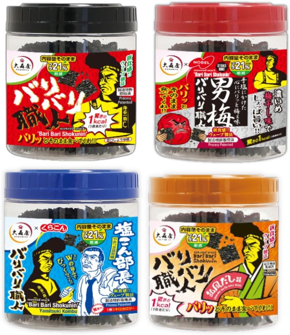 大森屋 バリバリ職人 4種 (30枚入×4)アソート(旨口しょうゆ、男梅、和風だし、やみつき昆布)各1個 味付け海苔 のり