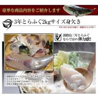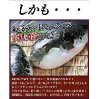 その3年ふぐの中でも希少価値と言われる、特大級の2キロ以上サイズを発送日にさばき、身欠いた状態で骨付き真空パック状態でお送り致します。