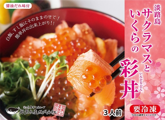 【原材料】 サクラマス(淡路島産)、醤油(原材料の一部に大豆、小麦を含む)、みりん、酒、ゴマ、いくら(北海道産)、醤油、発酵調味料、砂糖、食塩、醸造酢/調味料(アミノ酸等)、(一部に小麦、いくら、大豆を含む)