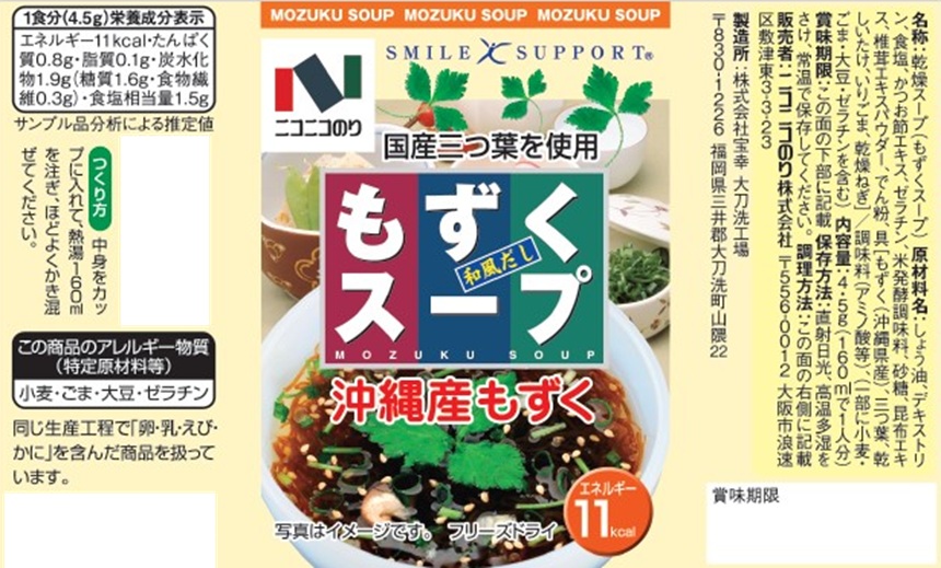 三つ葉がシャキシャキしてて美味しいです。出汁は少し甘めでもずくもしっかりしているので美味しく飲めます。さすがフリーズドライだと感じました