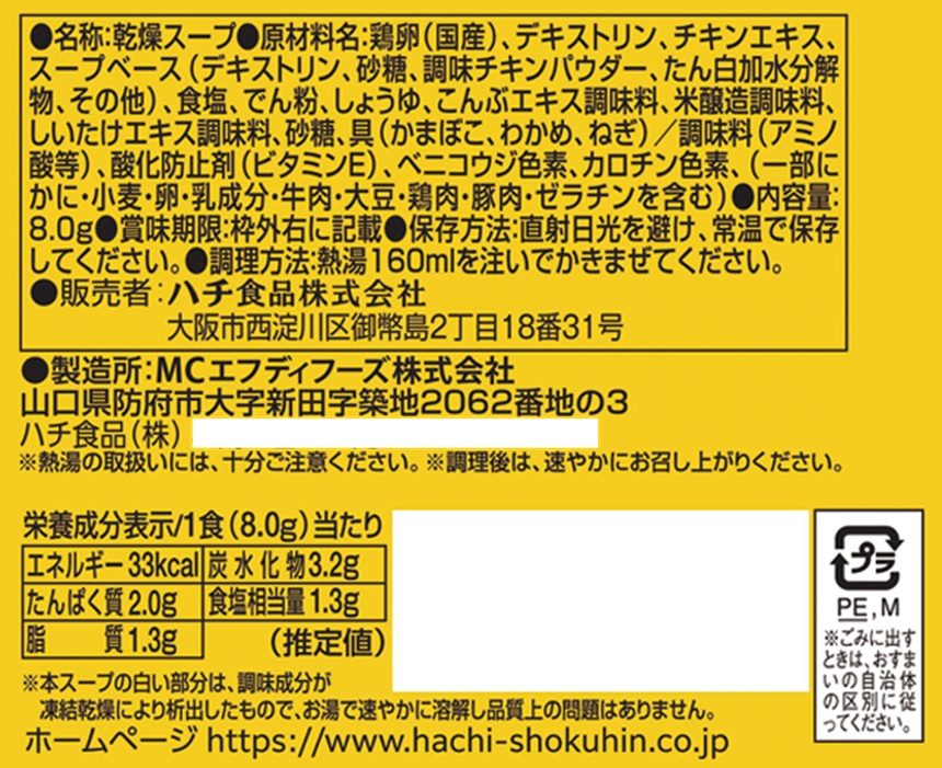 クーポン利用で152.9円/食 [20食]ハチ食品 本格派 たまごスープ K-20K 8g