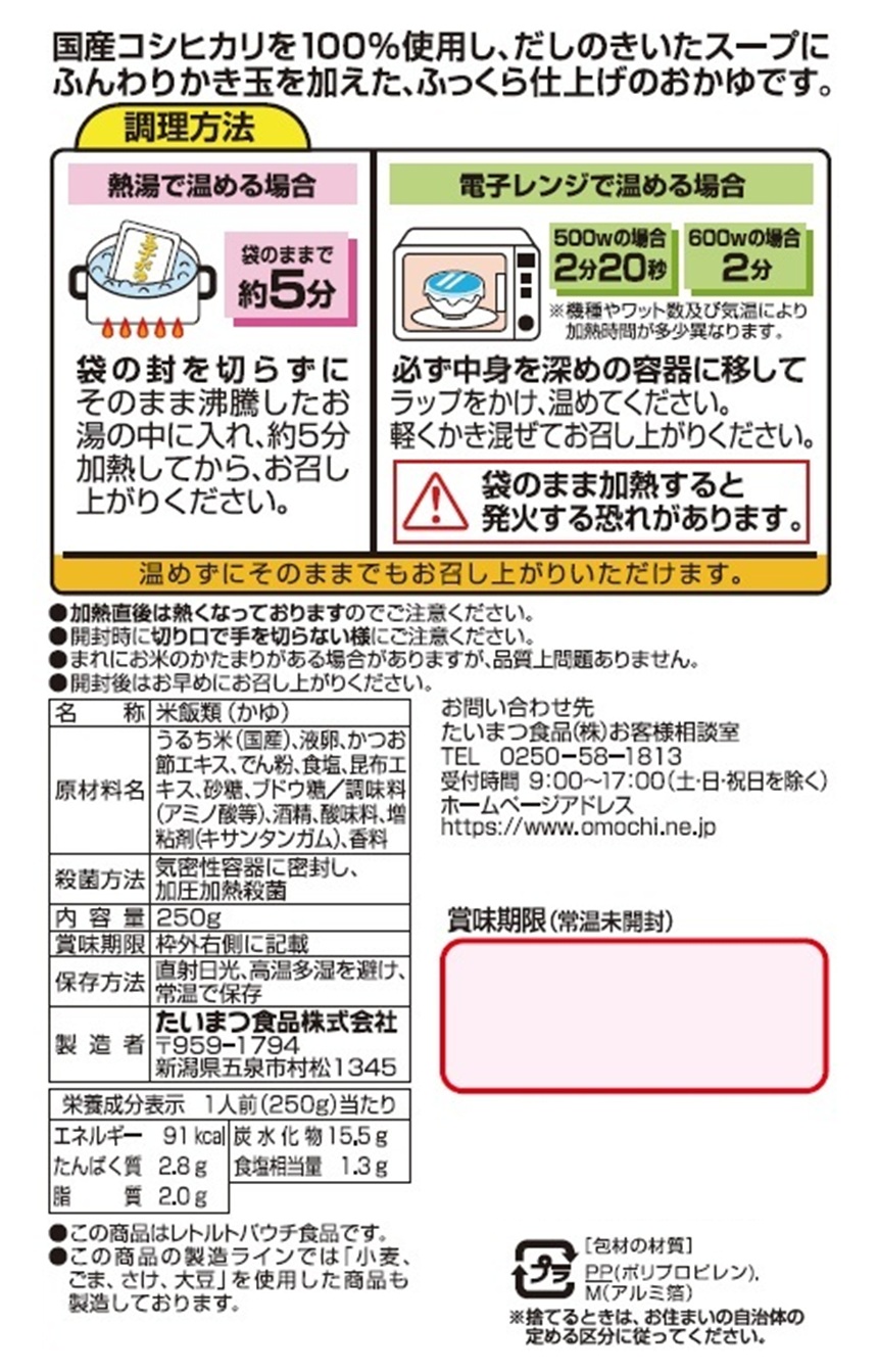 国産コシヒカリ玉子がゆ 250g