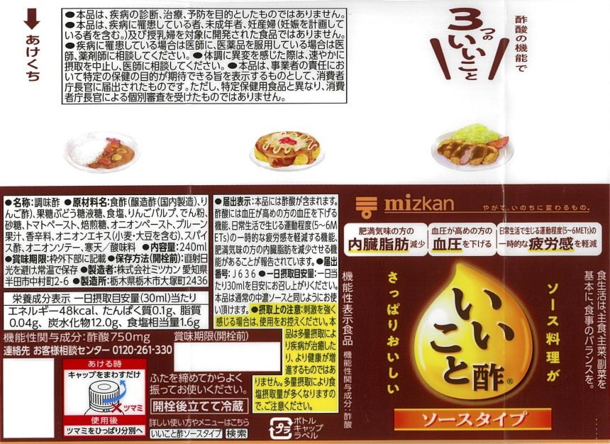 ・ミツカン いいこと酢ソースタイプ 240ml×12本 - 賞味期限
