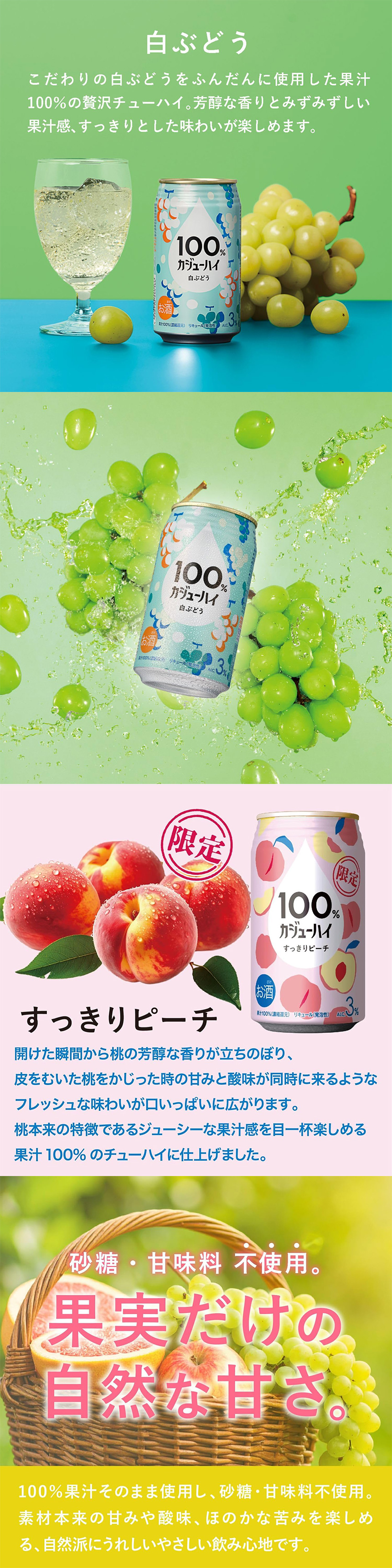 - 100%カジューハイ 白ぶどう 340ml / すっきりピーチ 340ml