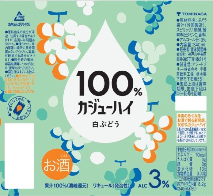 - ・100%カジューハイ 白ぶどう 340ml×24本