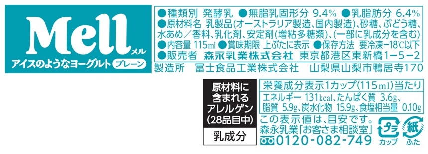 - ・Mell(メル)アイスのようなヨーグルト プレーン 115ml×36個