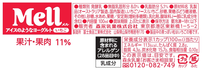 - Mell(メル)アイスのようなヨーグルト 2種セット( プレーン 115ml / いちご 100ml )