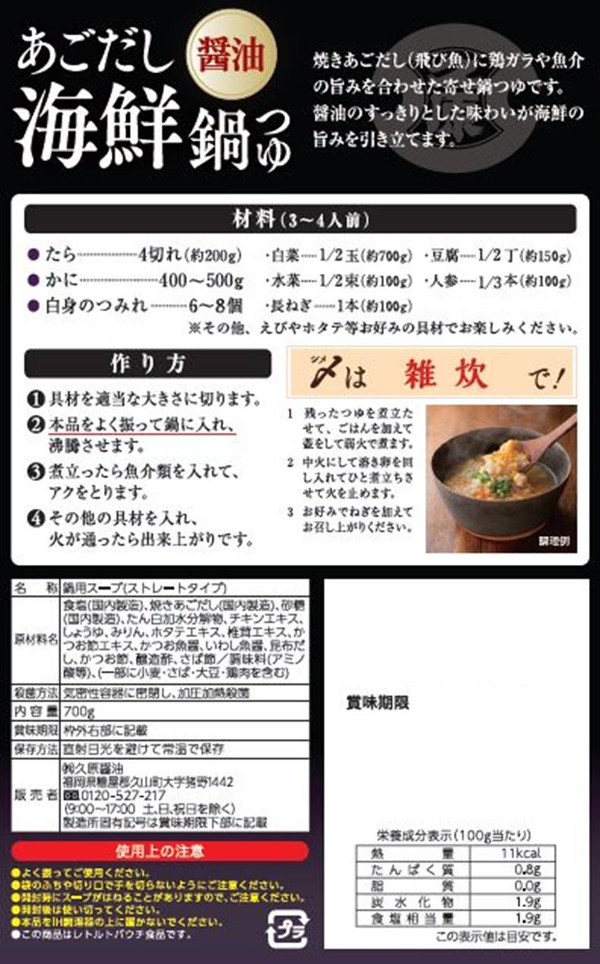 ・あごだし海鮮鍋つゆ(醤油) 700g×6袋