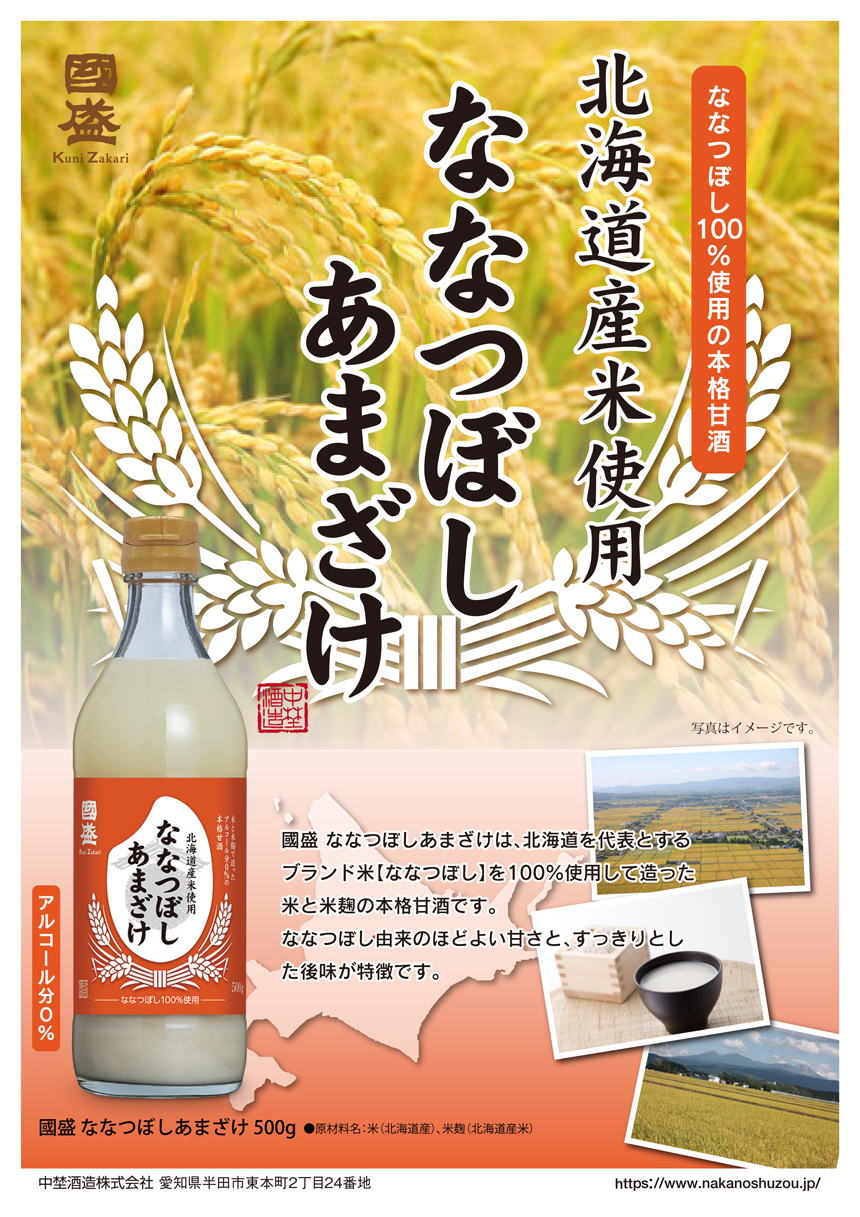 北海道を代表とするブランド米【ななつぼし】を100%使用して造った米と米麹のみの本格甘酒です。