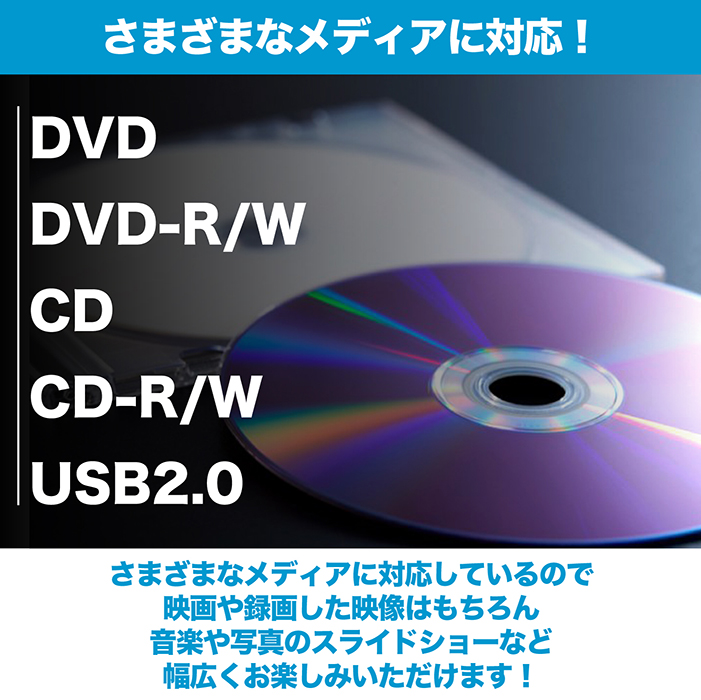 3電源対応なので場所を選ばずDVDや音楽を楽しめる