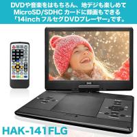 ポータブルDVDプレーヤー 14インチ 地デジTVチューナー搭載 DVD/CD再生 番組録画可能 3電源対応 車載用バッグ付属 多軸回転型モニター HAK-141FLG