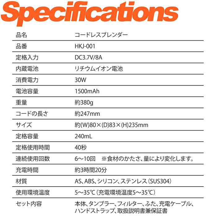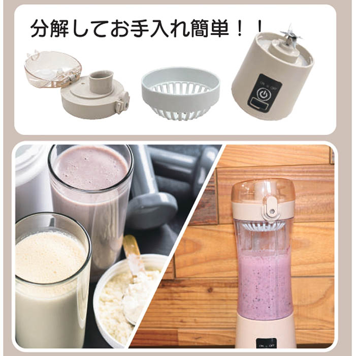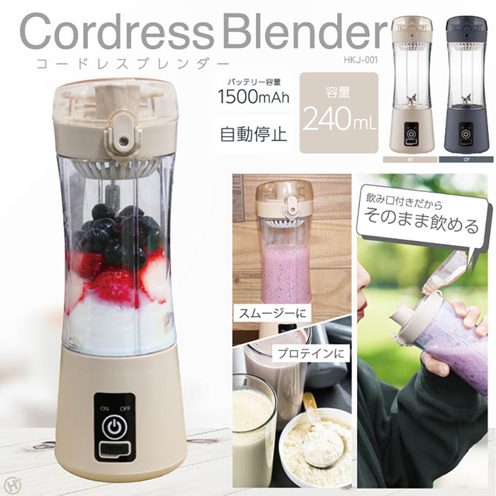 ブレンダー コードレス コンパクト そのまま飲める 240ml 1500mAh 自動停止 スムージー プロテイン ジュース ポタージュ 離乳食 HKJ-001