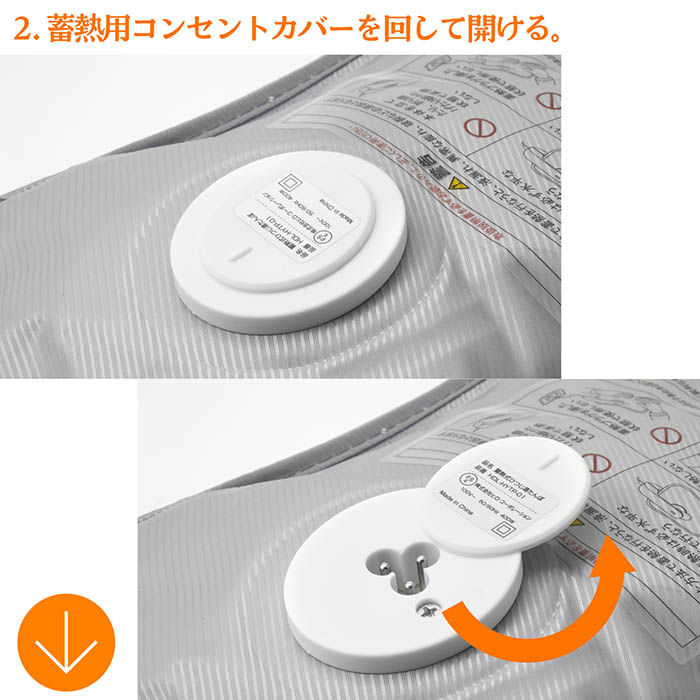 ●蓄熱用電源ケーブルは、必ず付属の蓄熱式湯たんぽ蓄熱用電源ケーブルを使用する。