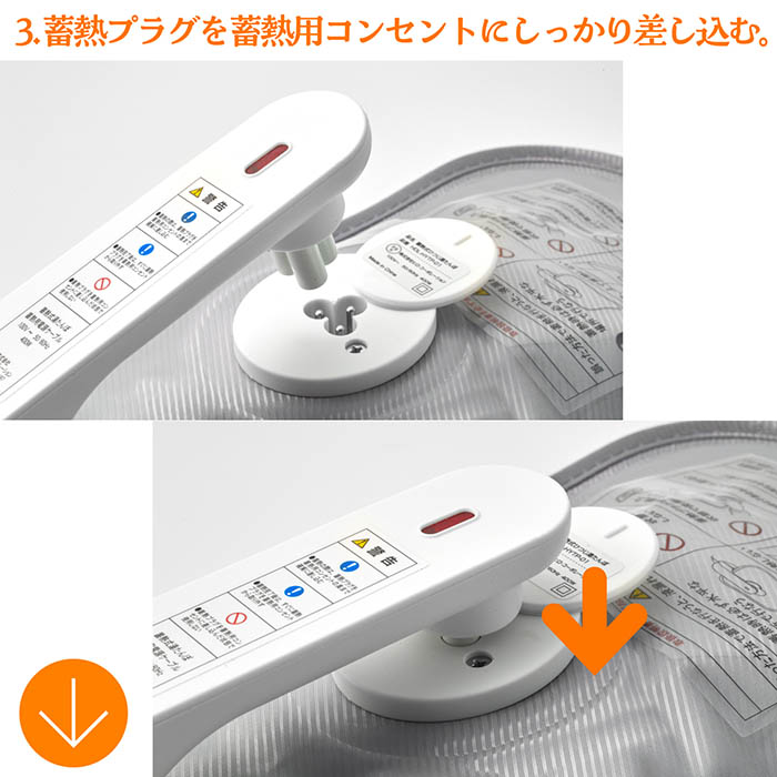 ●蓄熱の際は蓄熱プラグを本体の蓄熱用コンセントにしっかりと奥まで差し込む。
