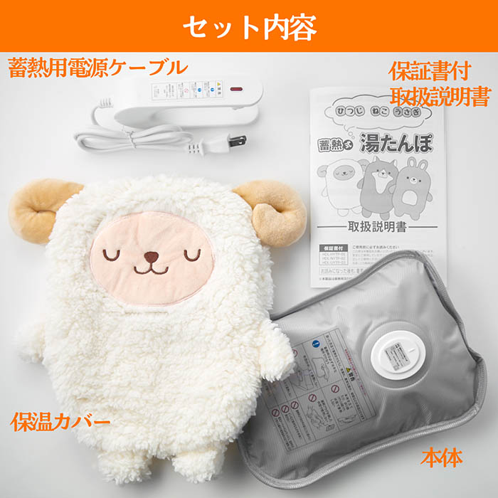 ●セット内容:湯たんぽ・保温カバー・蓄熱用電源コード・取扱説明書
