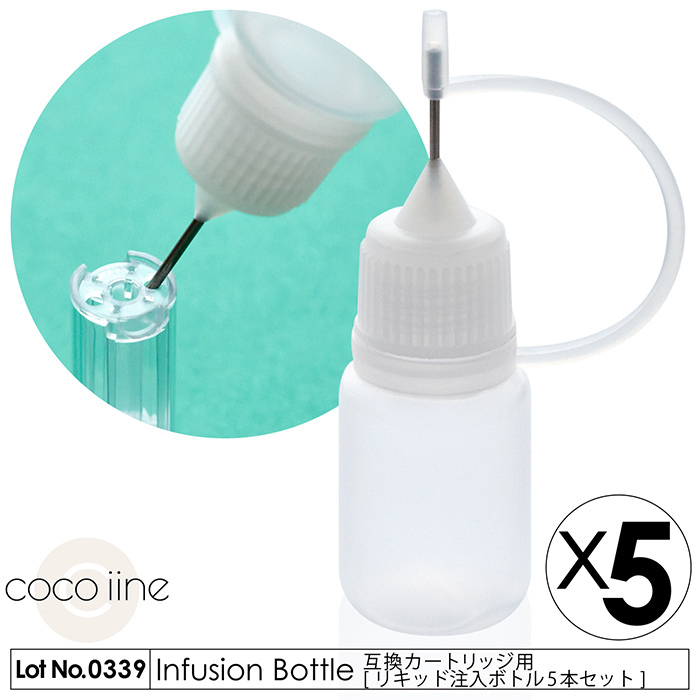 互換カートリッジ用 リキッド注入ボトル 空ボトル 5個セット リキッドを入れるのに便利な容器 直径1mmの極細針 送料無料