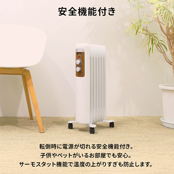 オイルヒーター ふく射熱方式 3段階温度設定 最大1200W サーモスタット機能 転倒時自動OFF 子供やペットも安心 ヒートショック対策 RM-241H