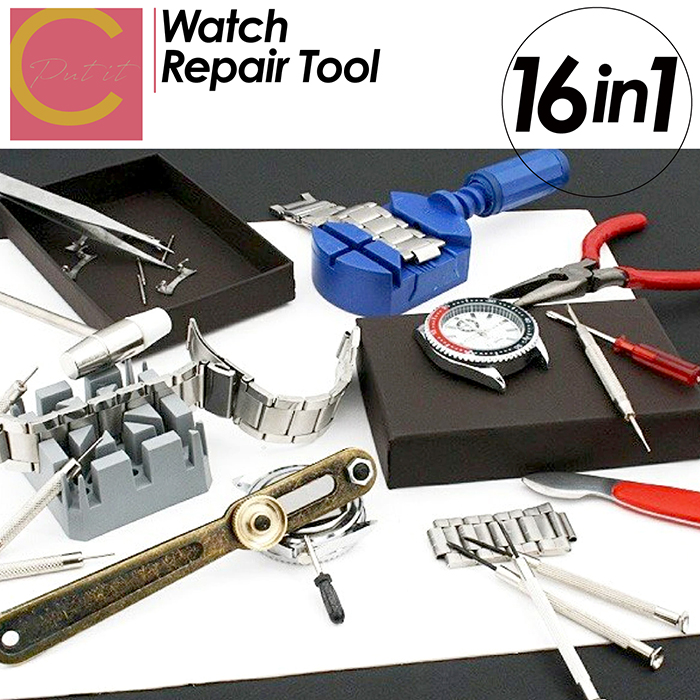 腕時計工具 電池交換 ベルト調整 16点セット 時計修理工具 時計工具 腕時計 修理 電池交換 バンド ベルト ピン調節 時計バンド調節 時計用工具