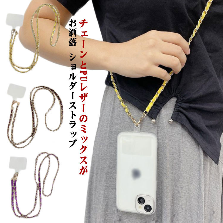 | チェーンとPUレザーのミックスがお洒落 ショルダーストラップ ストラップホルダー付属でスマホをショルダー仕様にできるロングストラップです。 7色展開でカジュアルにもオケージョンシーンにも。いろんなシーンで使えます。 ショルダーが付け替え可能なトートバック、斜め掛けバッグ、肩掛けバッグなどにお使いいただけます。 カジュアルにもキレイめにもこれ一つでいつものコーディネートをワンランクアップさせてくれます。 | |
