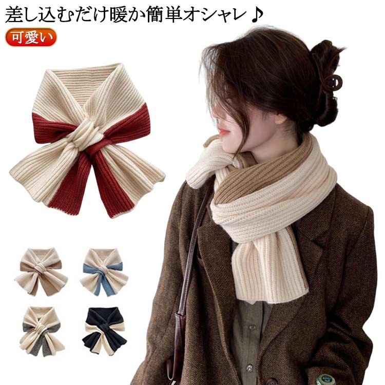 | 差し込むだけ暖か簡単オシャレ♪ バイカラーでワンポイントに鞄に入れても邪魔にならないさっと使えるミニサイズ♪ 通すだけ、巻いて結ぶ、リボン風、ぬけ感たっぷり、巻き方いろいろ♪ 大きめリブニットでチクチクしない、柔らかな肌触り | |