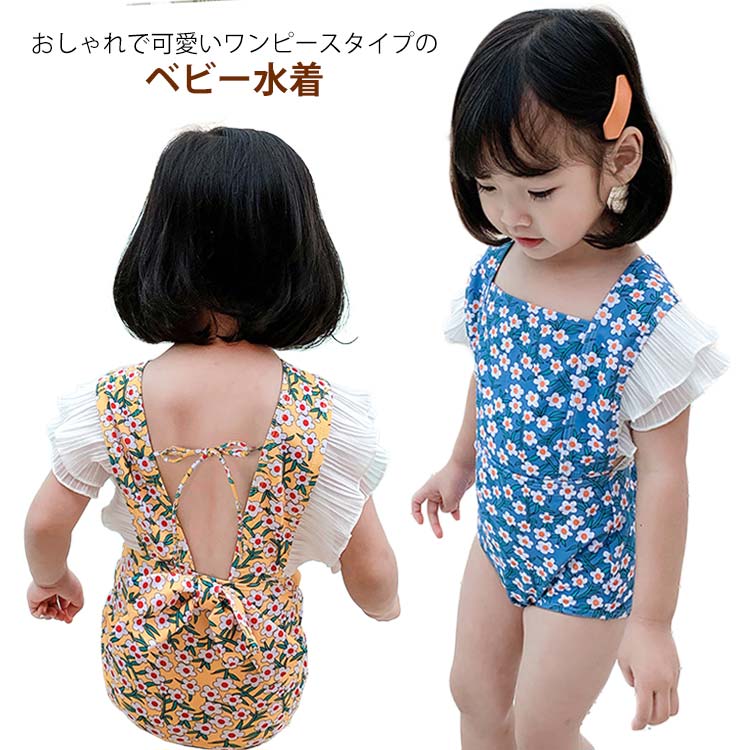 | おしゃれで可愛いワンピースタイプのベビー水着 オールインワンタイプなのでお腹をしっかりカバーできるので気にせず思いきり遊べちゃう | |