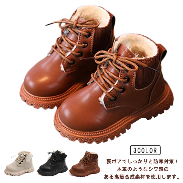 | 裏ボアでしっかりと防寒対策!本革のようなシワ感のある高級合成素材を使用します。 アッパーはPUレザーで作られて、長時間履いても快適です。 裏起毛なので防寒対策ばっちり♪さらに寒さが増すこれからの季節にぴったりです! 安定ソール。ソールはすべりにくく優れたゴムを採用します。 普段履きから通園、通学、お出かけ用まで幅広く活躍してくれます! | |