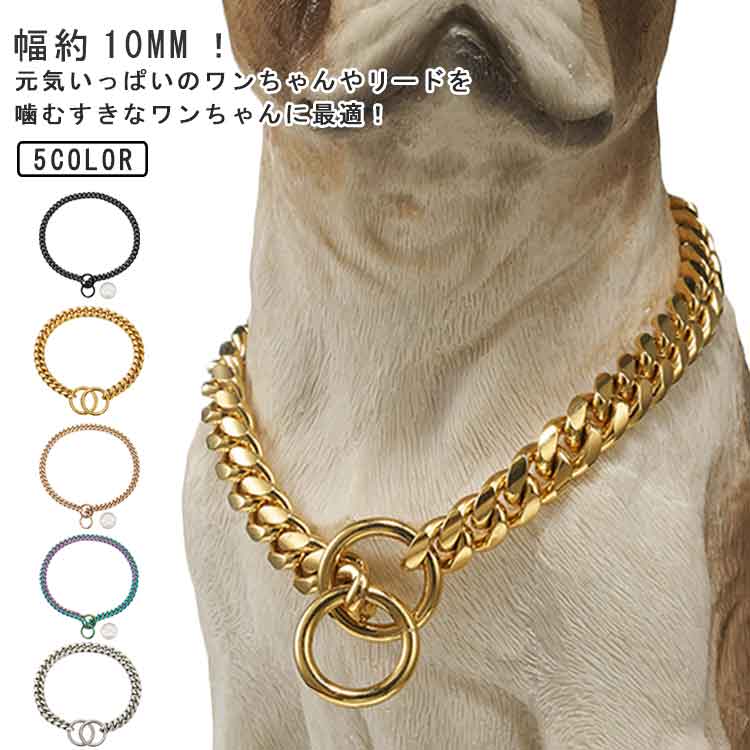 | 幅約10mm!元気いっぱいのワンちゃんやリードを噛むすきなワンちゃんに最適! ステンレス製首輪は強度が十分あって耐久性が抜群です。 ワンちゃんに噛まれたり、ワンちゃんが速く走るので、首輪が変形することを心配しないでください。 多層電気めっきによって、耐久性と耐摩耗性が抜群で、耐食性も高く、錆びにくいです。 見た目がシンプルで高級感が溢れています。散歩、訓練の時にご利用いただけます。 | |