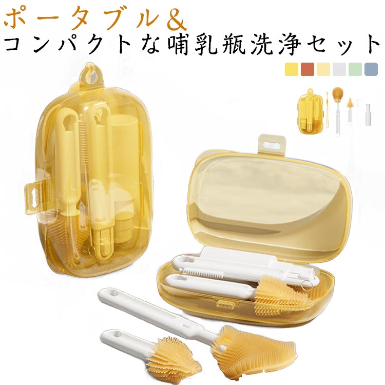 ポータブル 乳首ブラシ シリコン プレゼント 哺乳瓶ブラシ 哺乳瓶洗浄セット 旅行 ボトルブラシ ストローブラシ 乾燥スタンド 洗剤詰め替えボトル付