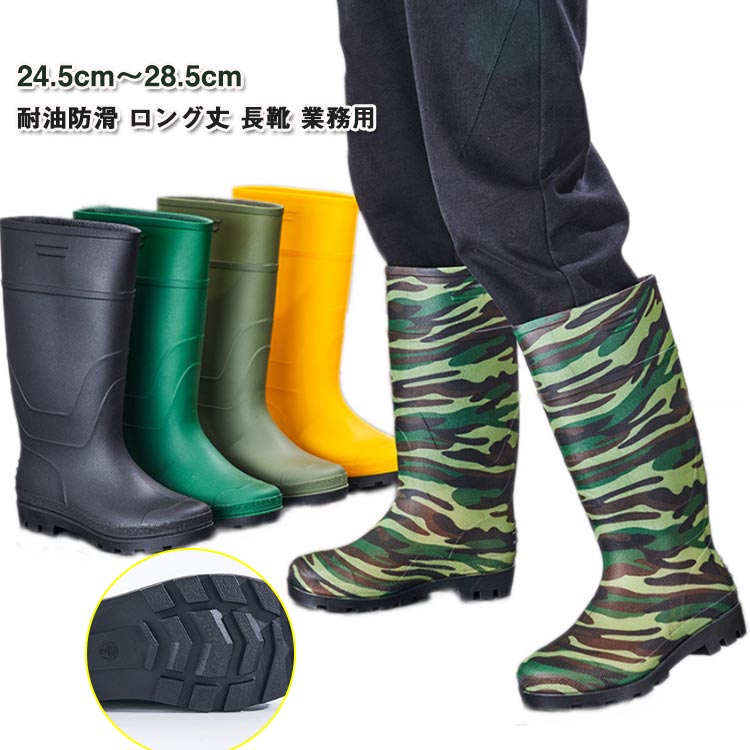 | 24.5cm〜28.5cm 耐油防滑 ロング丈 長靴 業務用 滑り止め付きソール | |